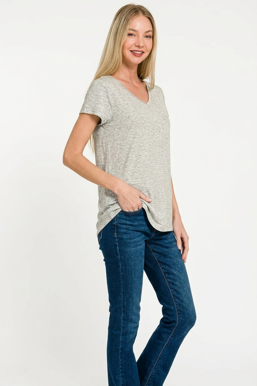 Zenana Rayon Short Sleeve V-Neck Round Hem Top