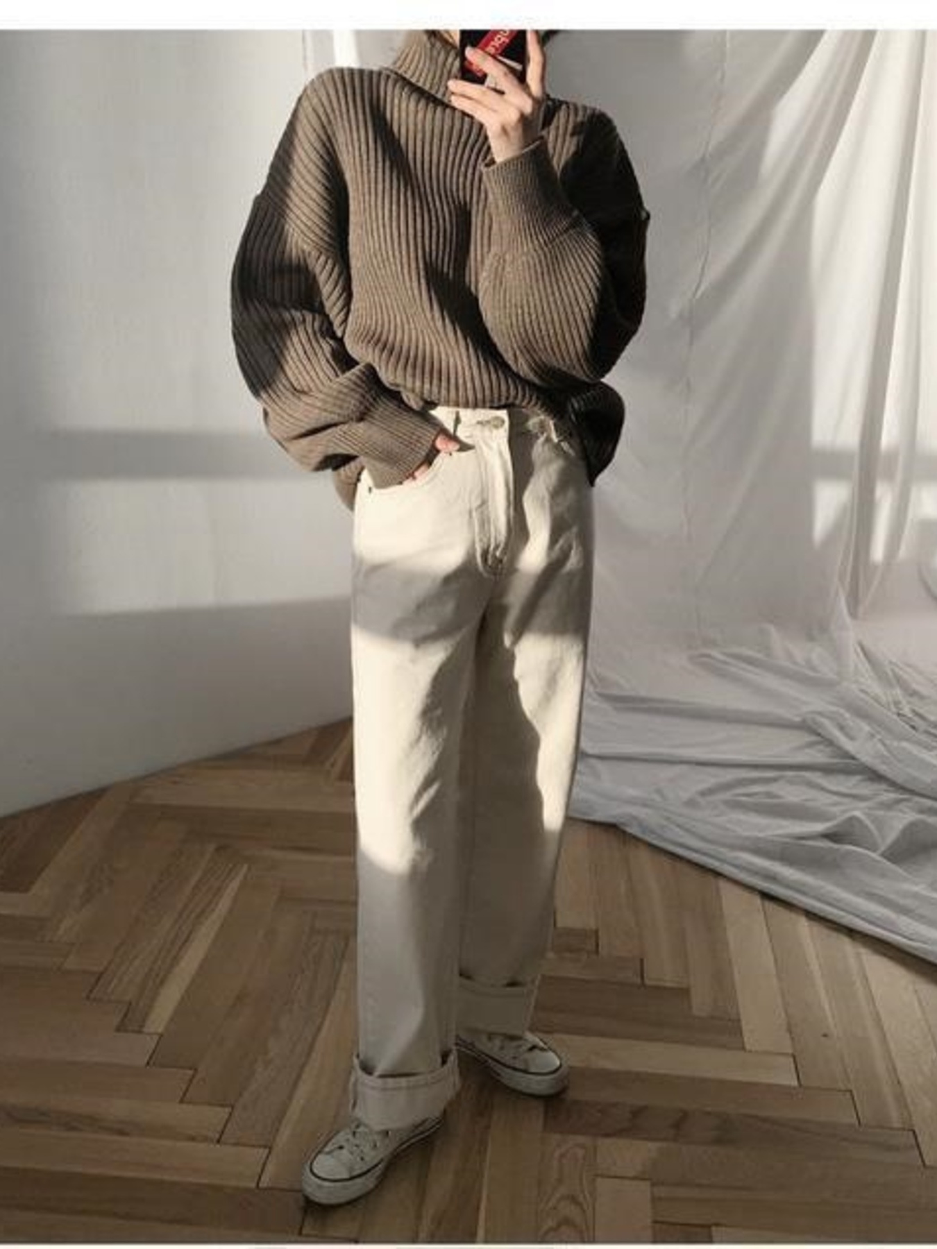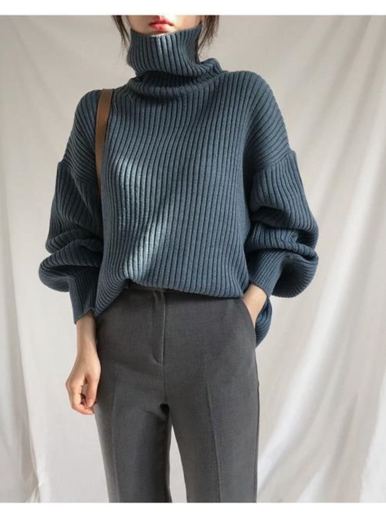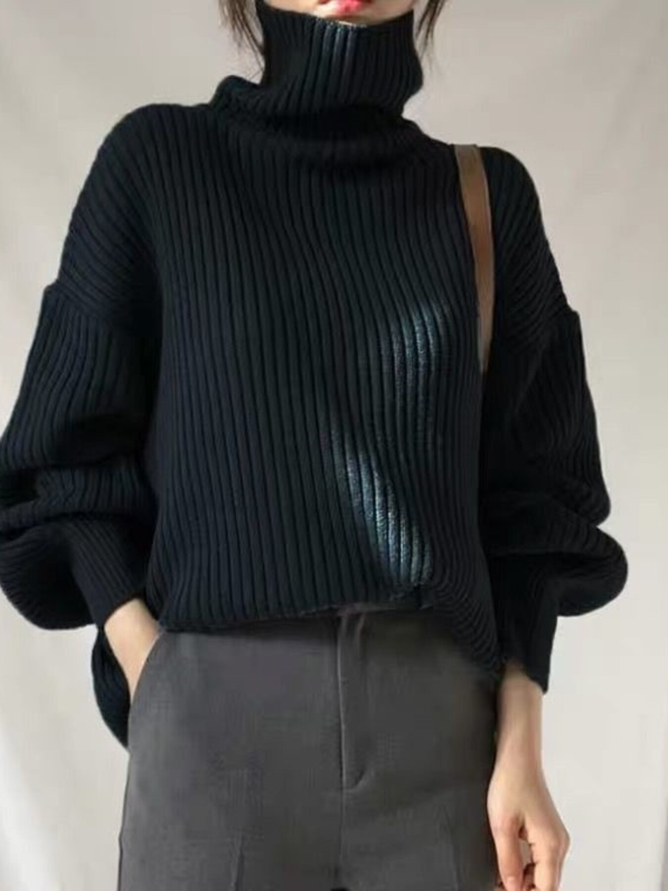Oversized Turtleneck Ribbed Knit Sweater