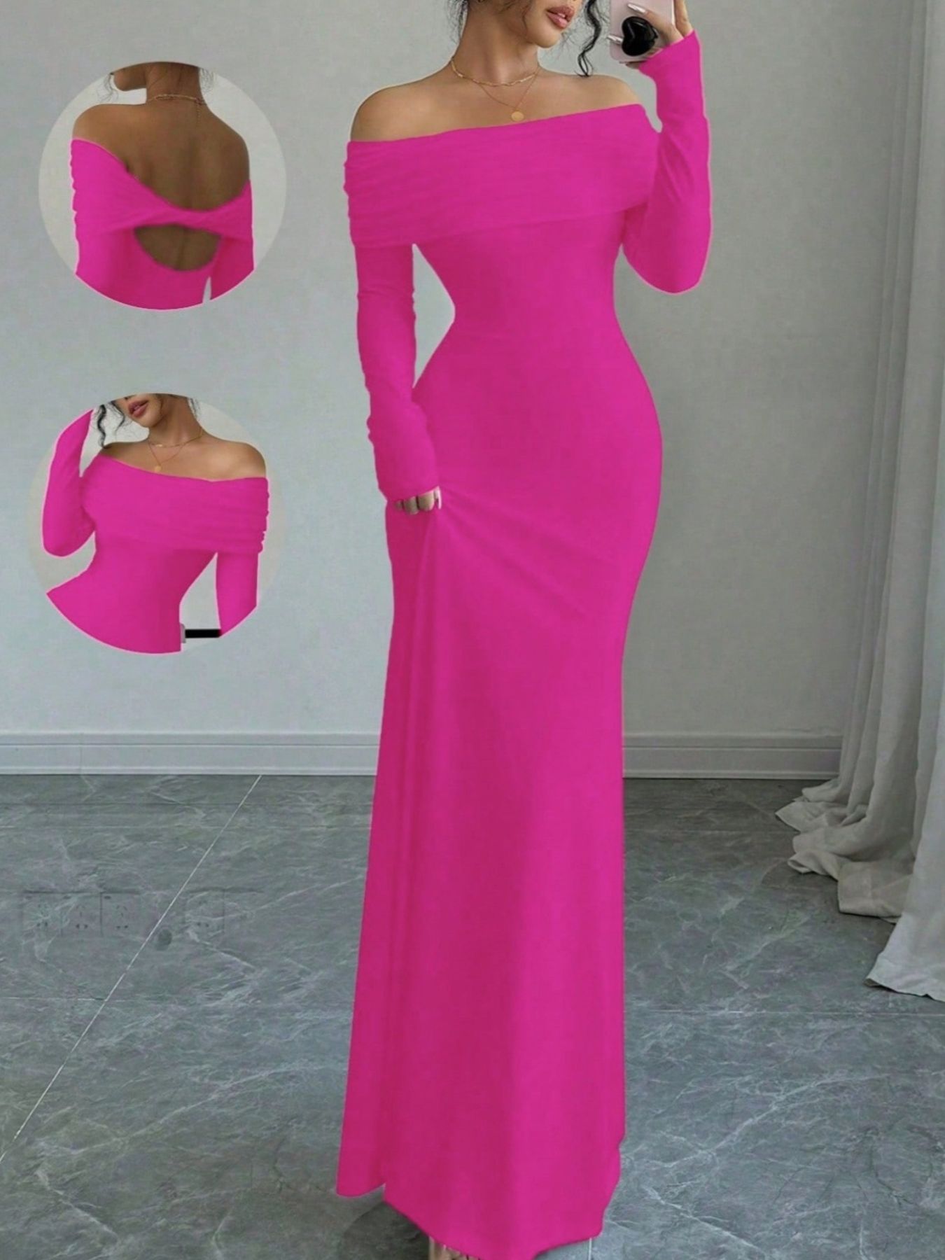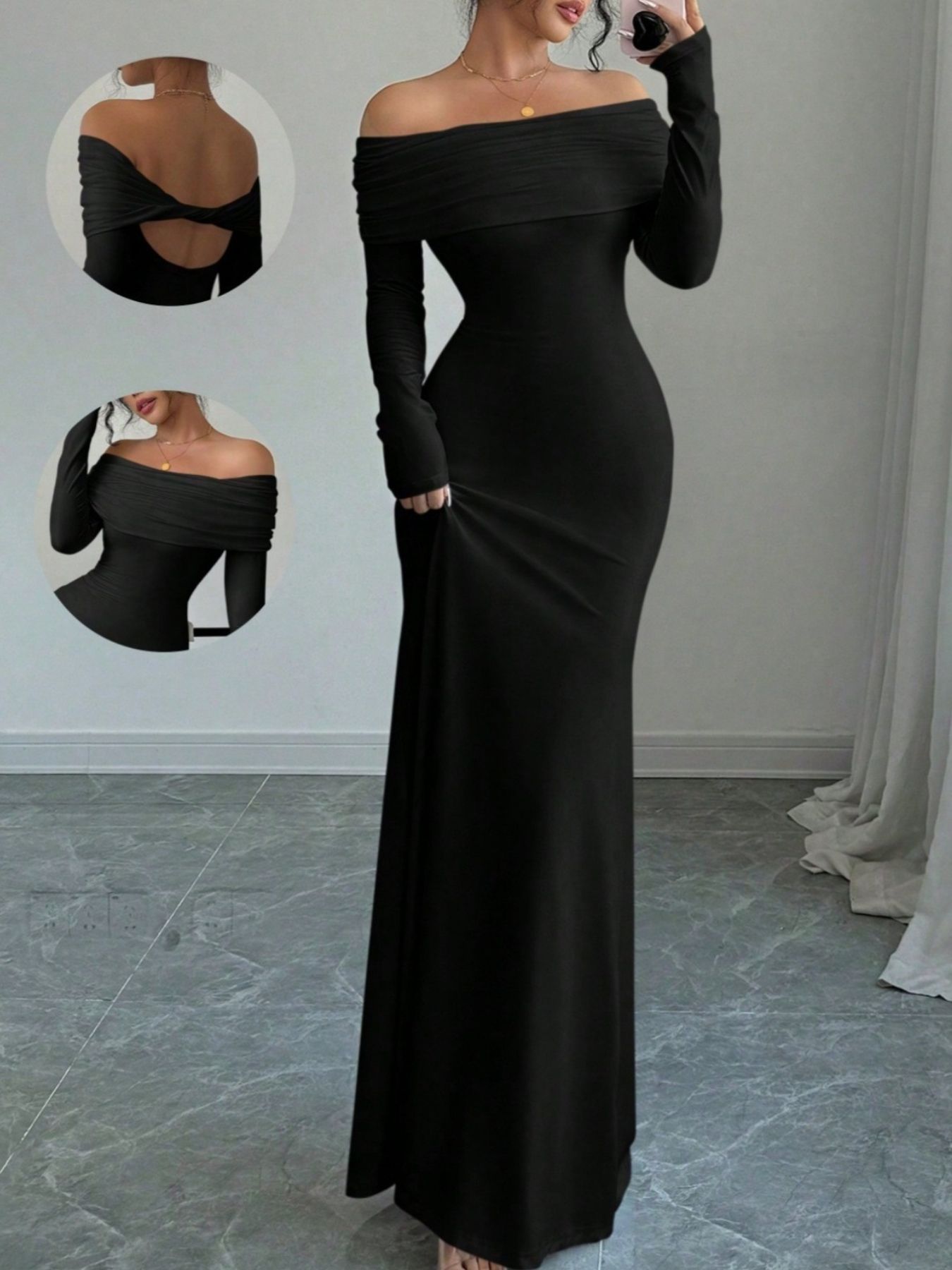 Off-Shoulder Long Sleeve Maxi Dress