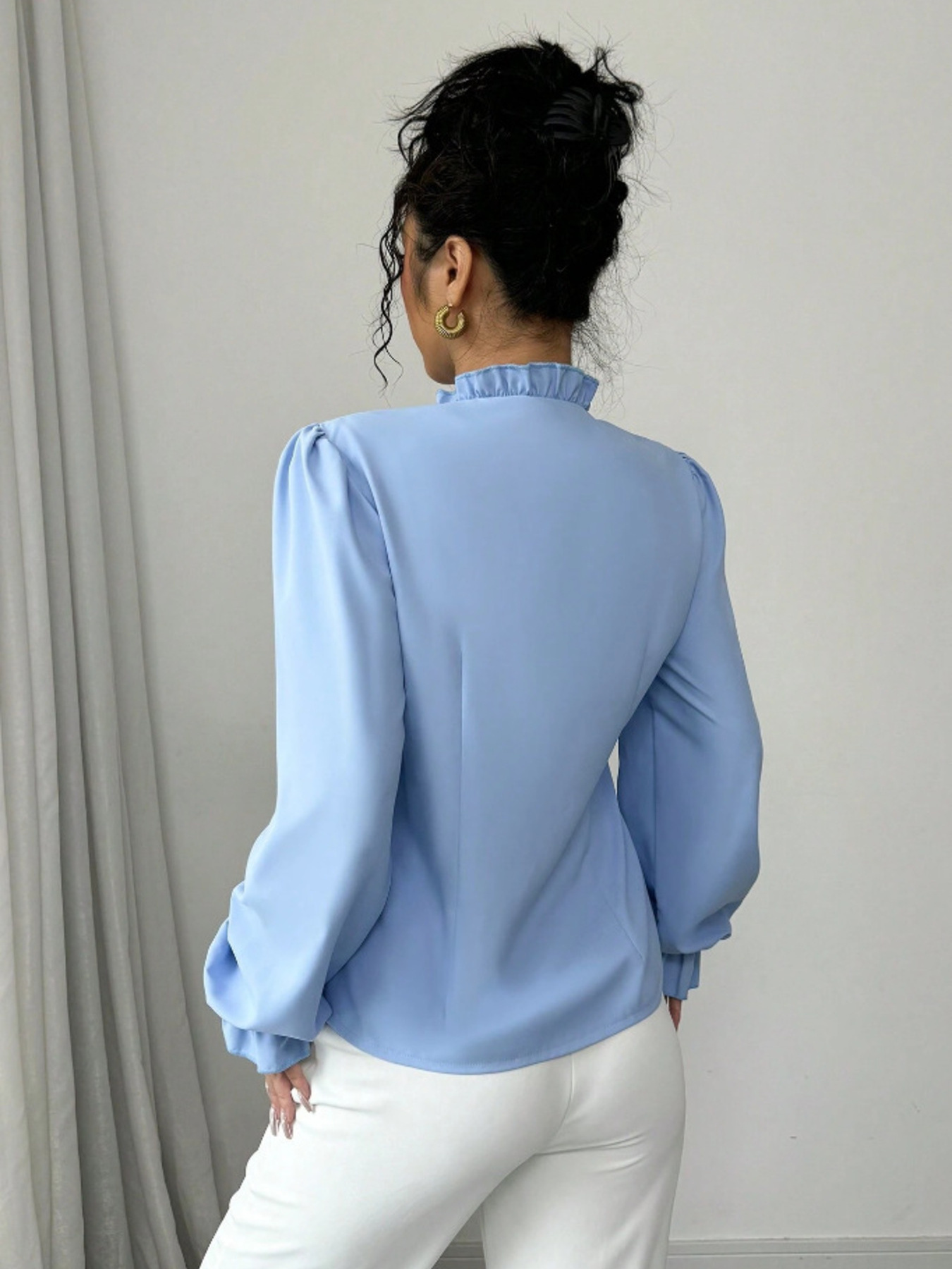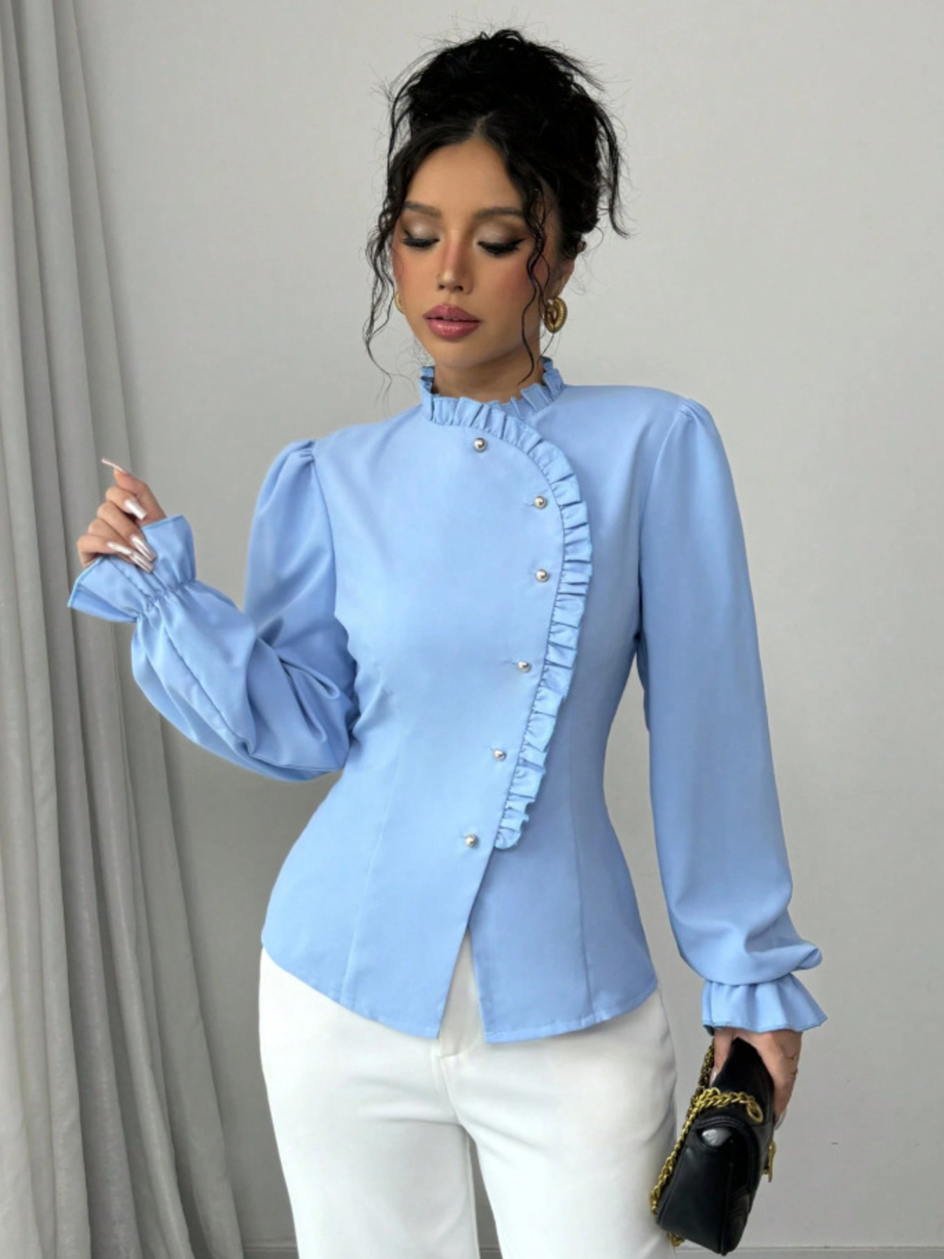 Ruffle Trim Long Sleeve Blouse