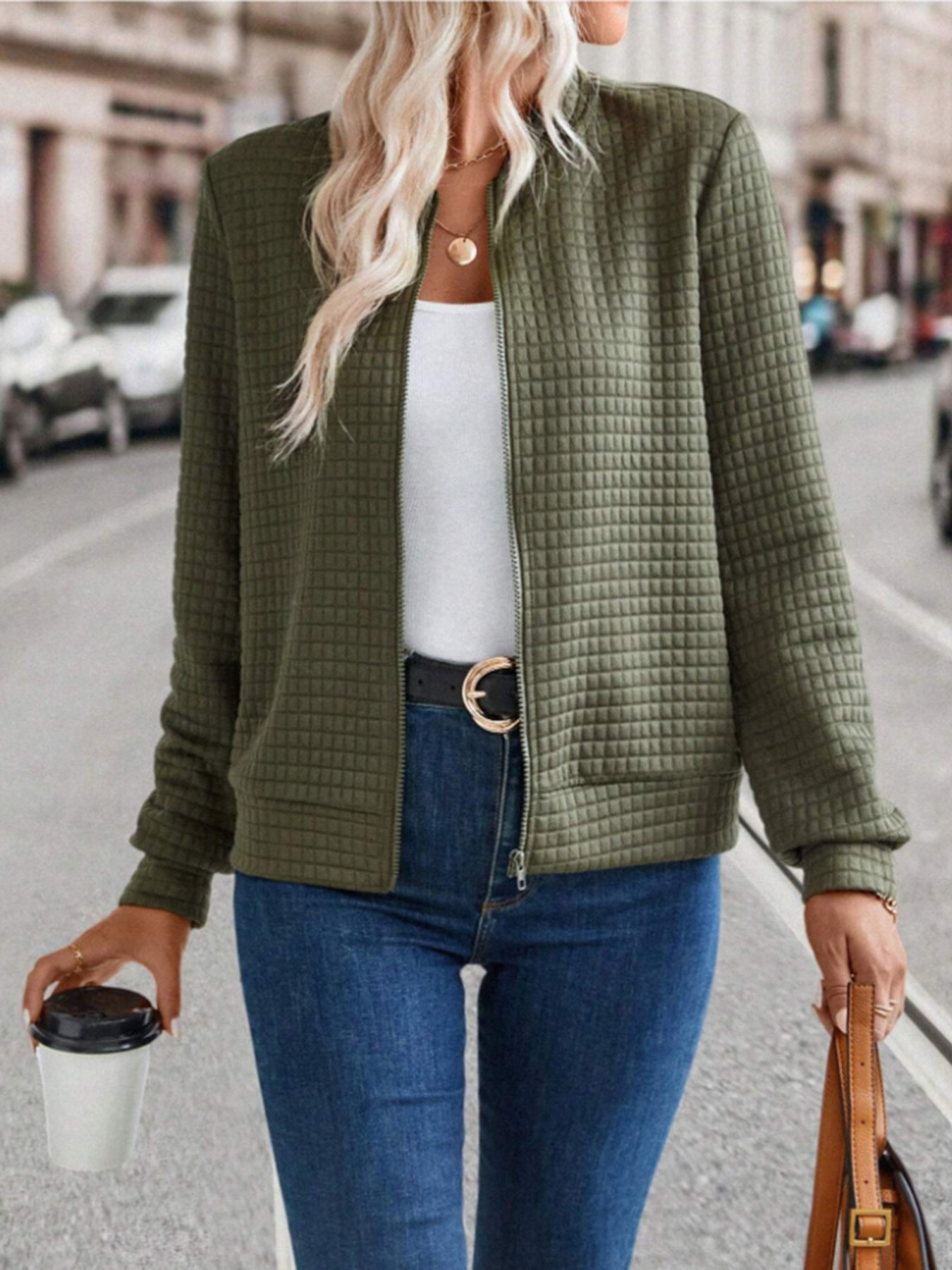 Textured Zip-Up Long Sleeve Jacket