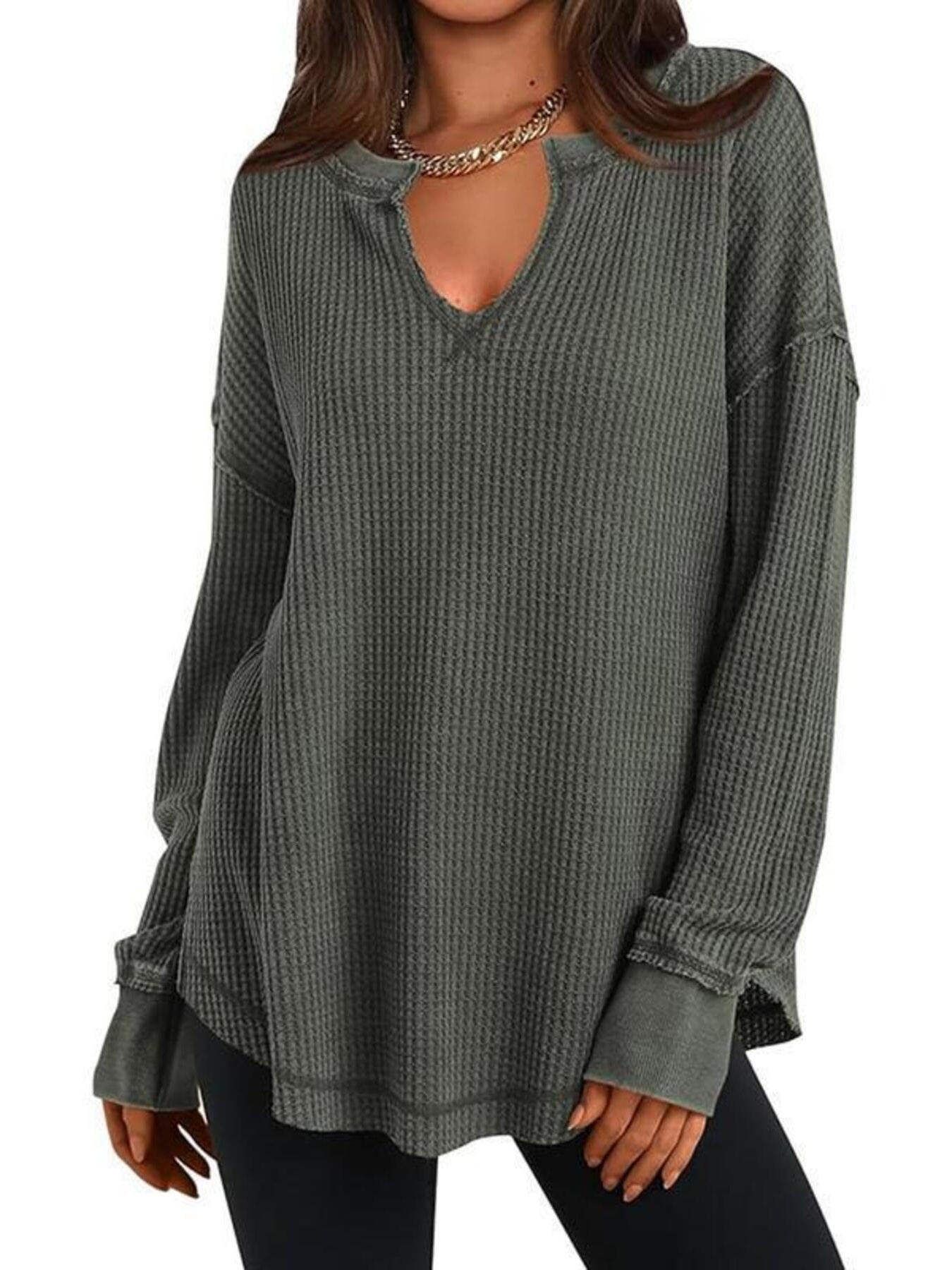 Waffle Knit Long Sleeve Sweatshirt