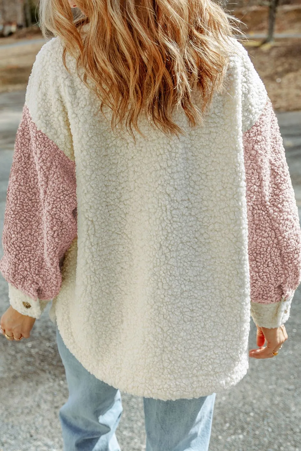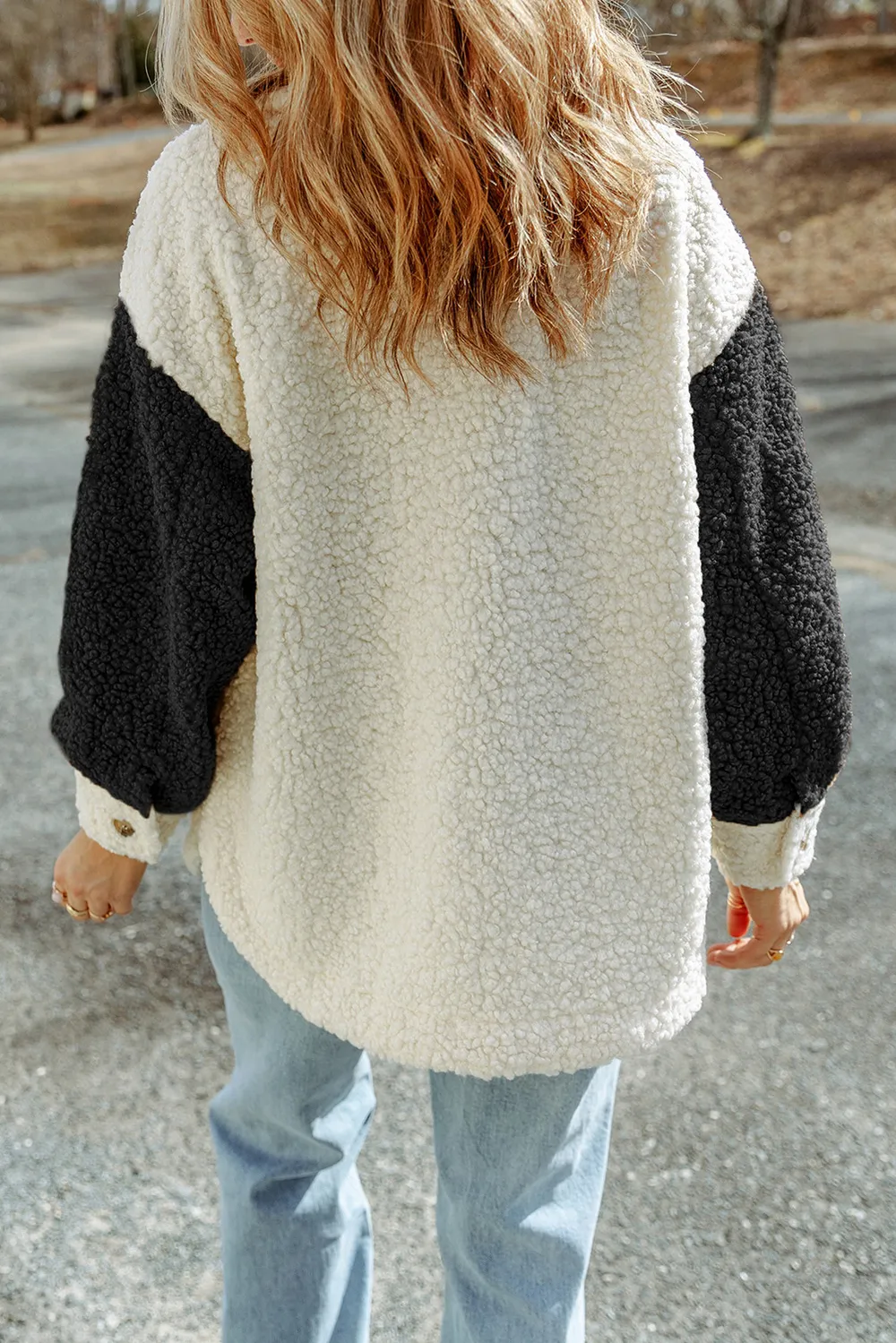 Color Block Collared Neck Sherpa Jacket
