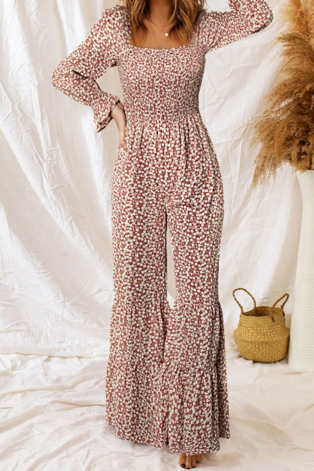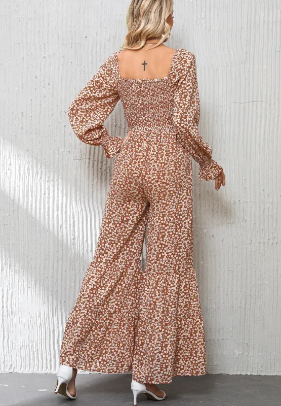 Floral Square Neck Ruffled Wide Leg Jumpsuit