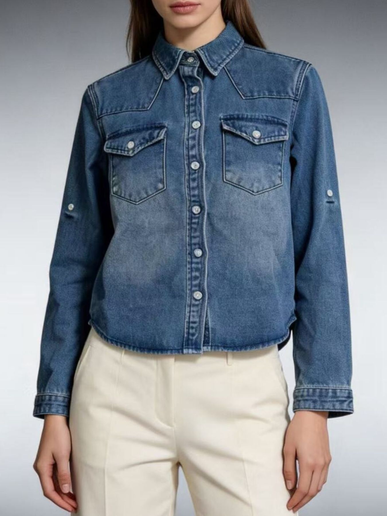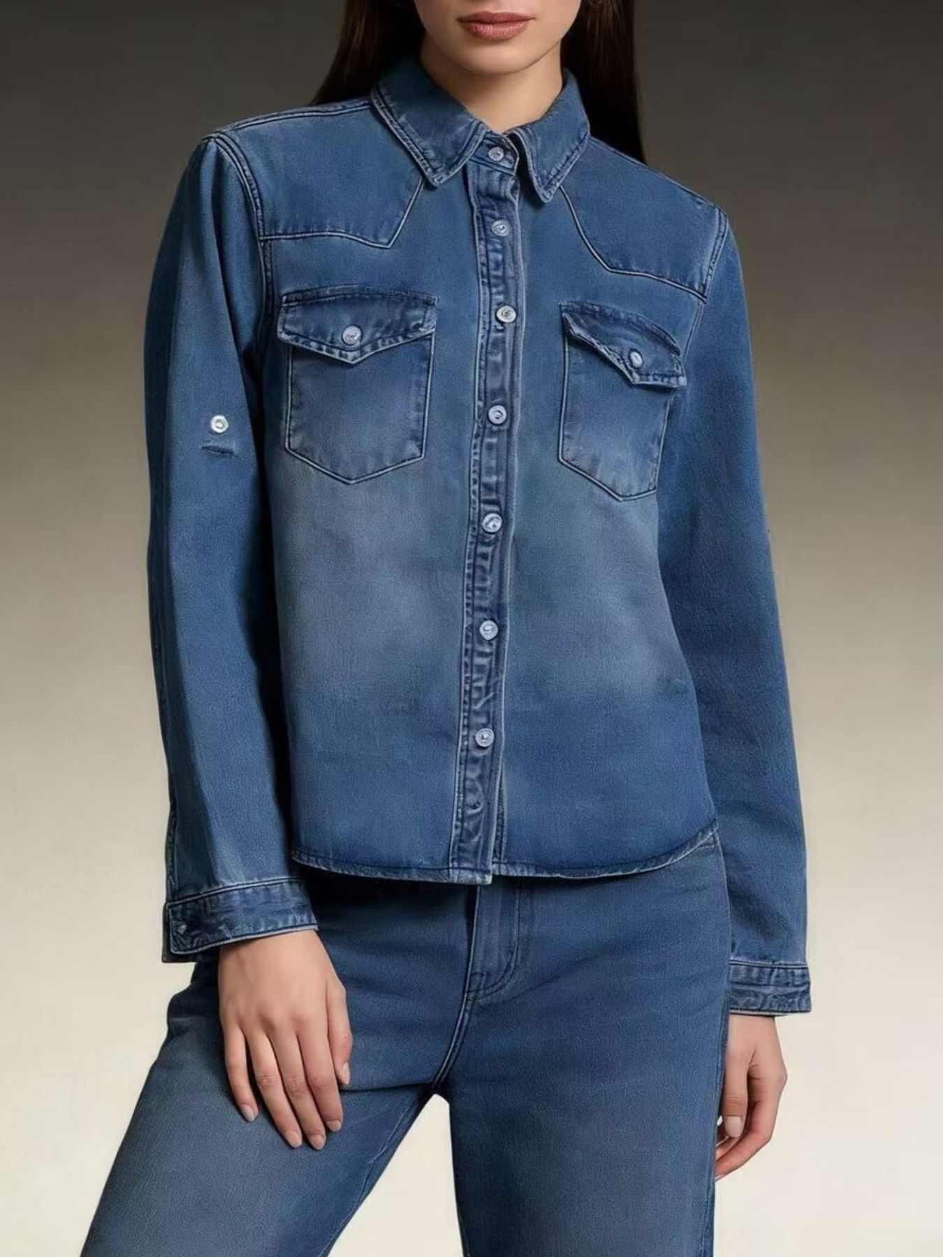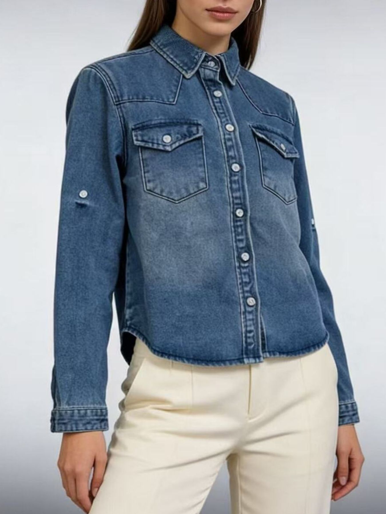 Button Down Classic Western Style Denim Top