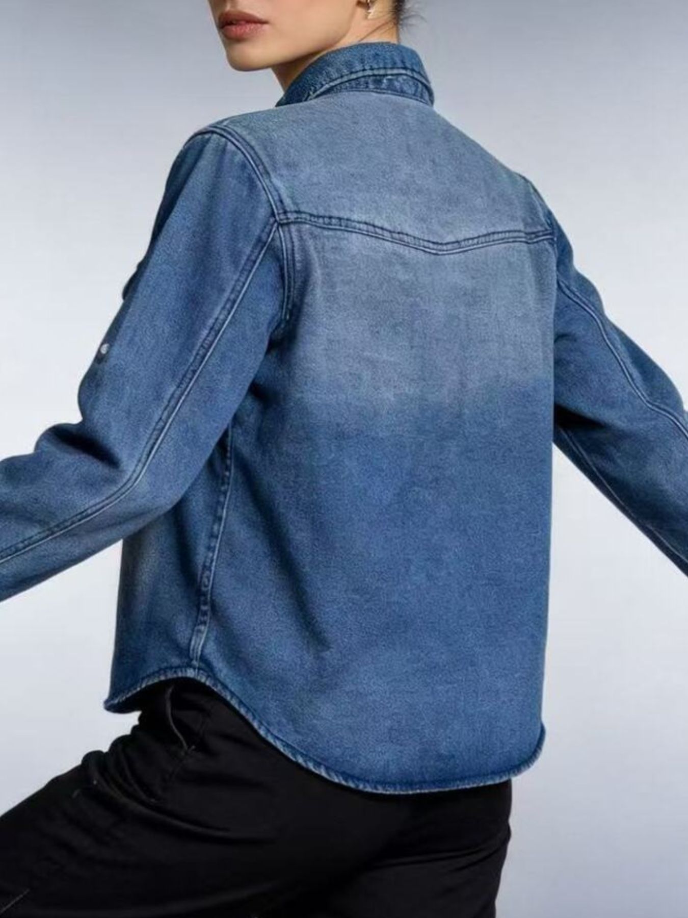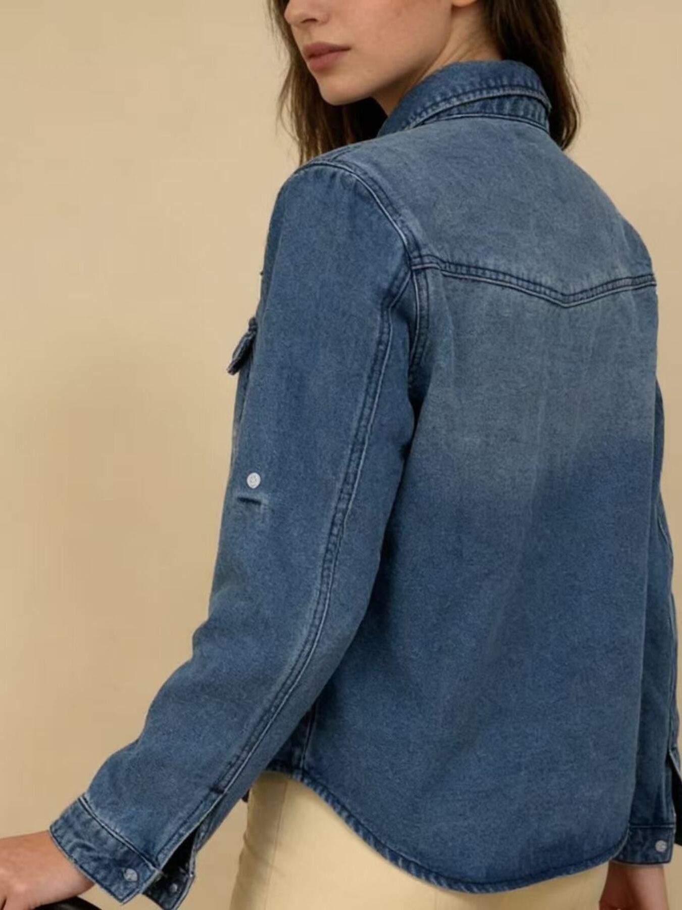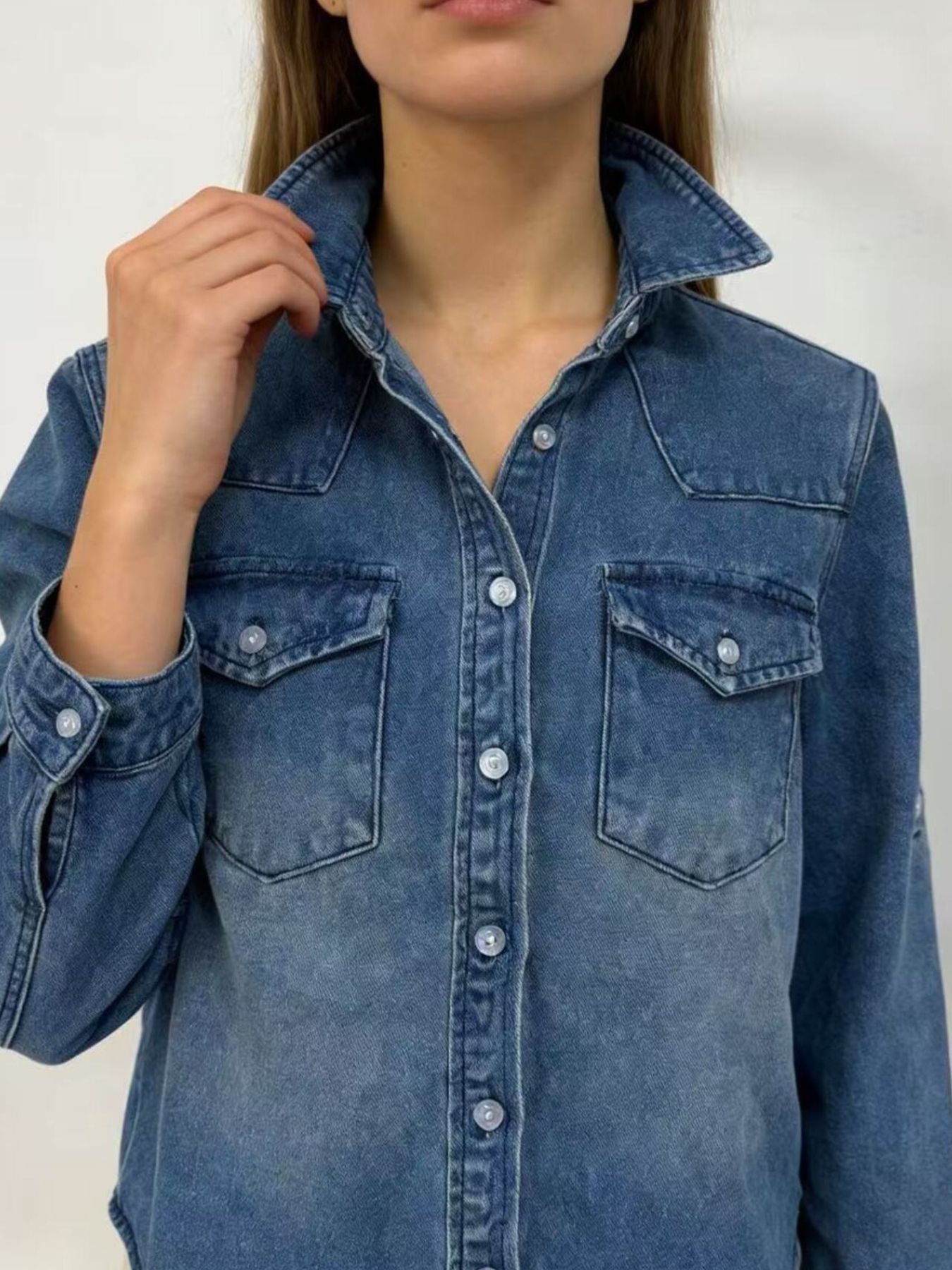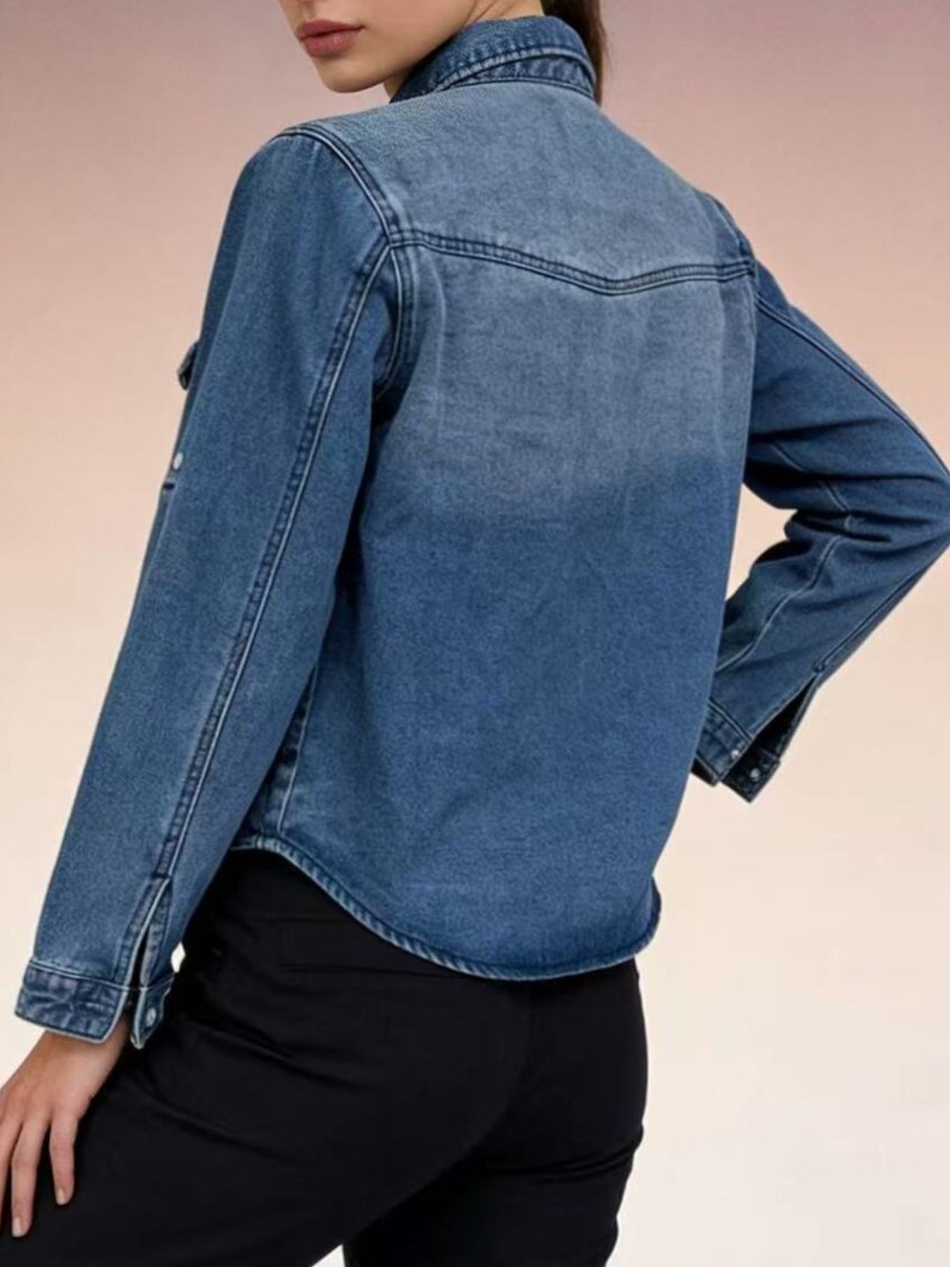 Button Down Classic Western Style Denim Top