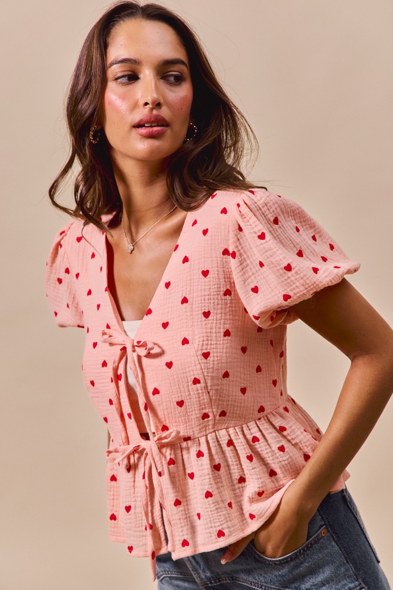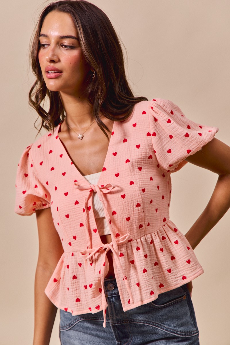 So Me All Over Heart Ribbon Tie Baby Doll Valentine Blouse