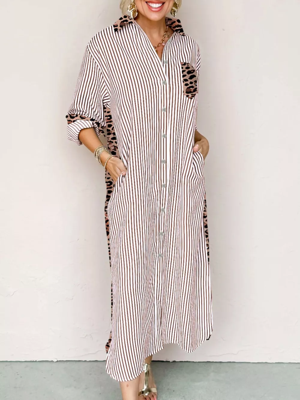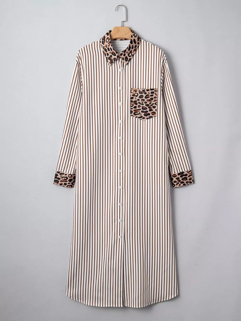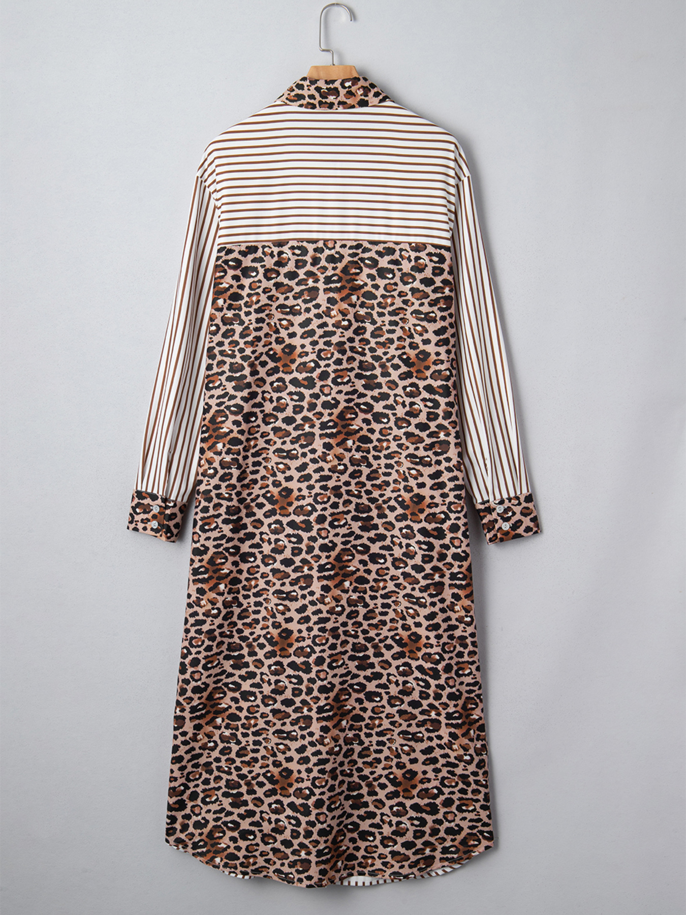 Striped Leopard Print Button Up Shirt Dress