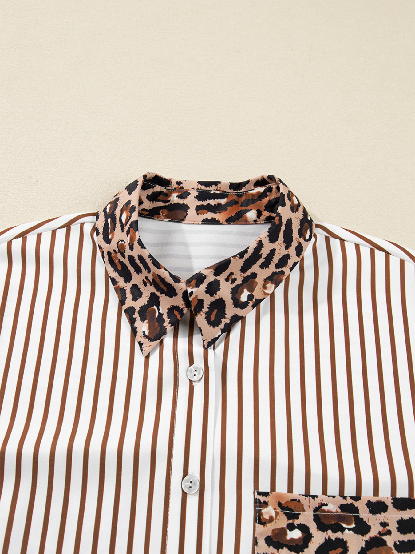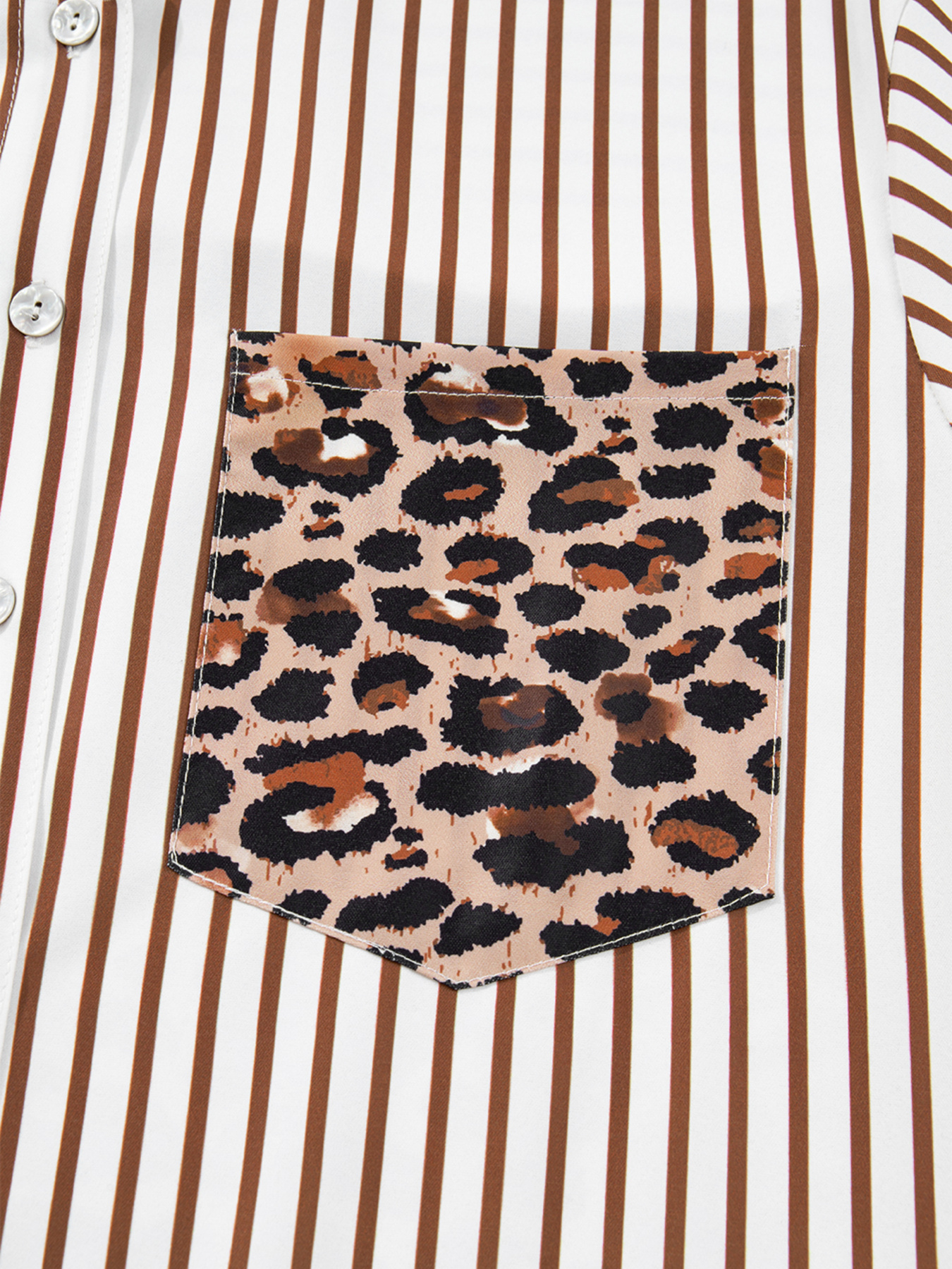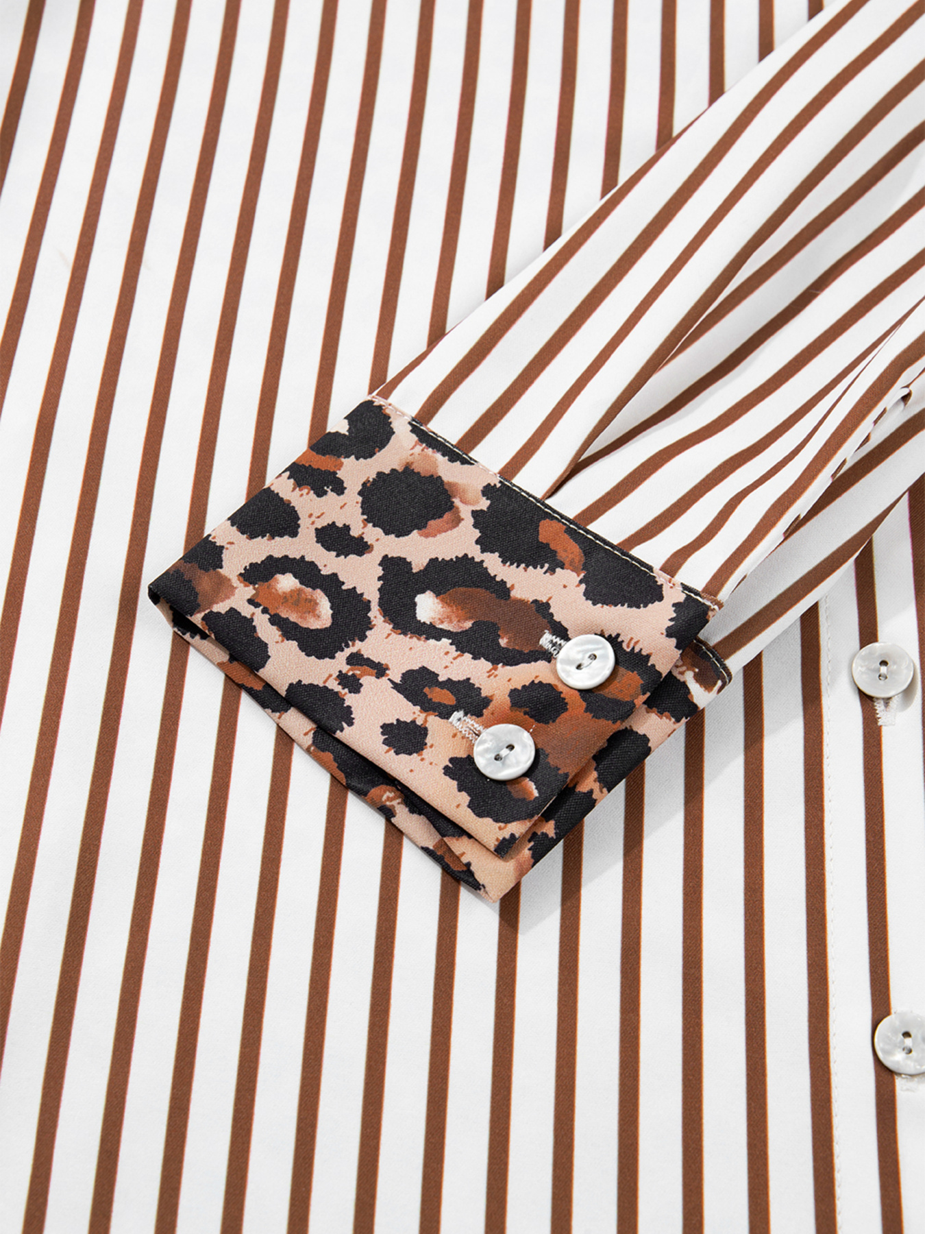 Striped Leopard Print Button Up Shirt Dress