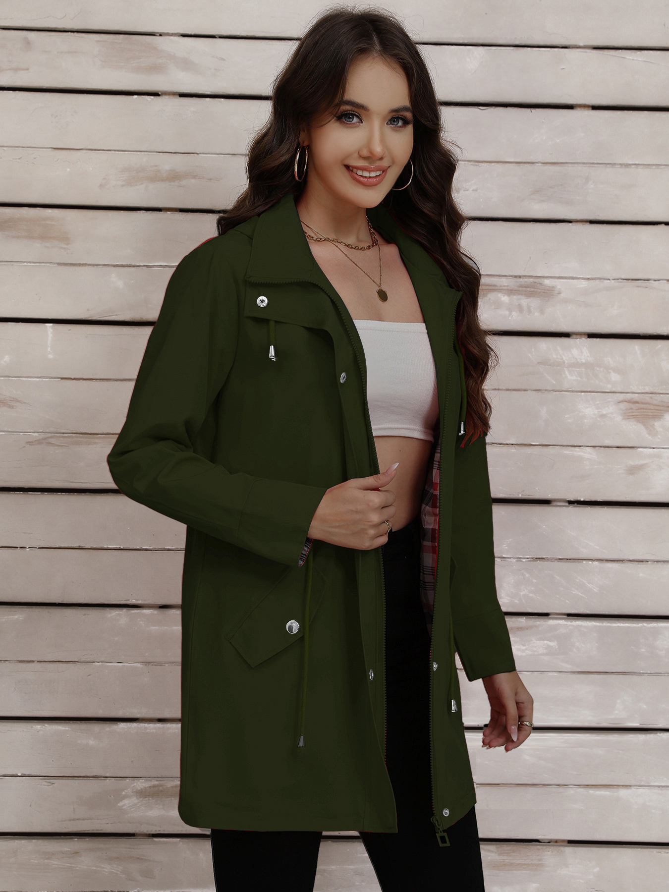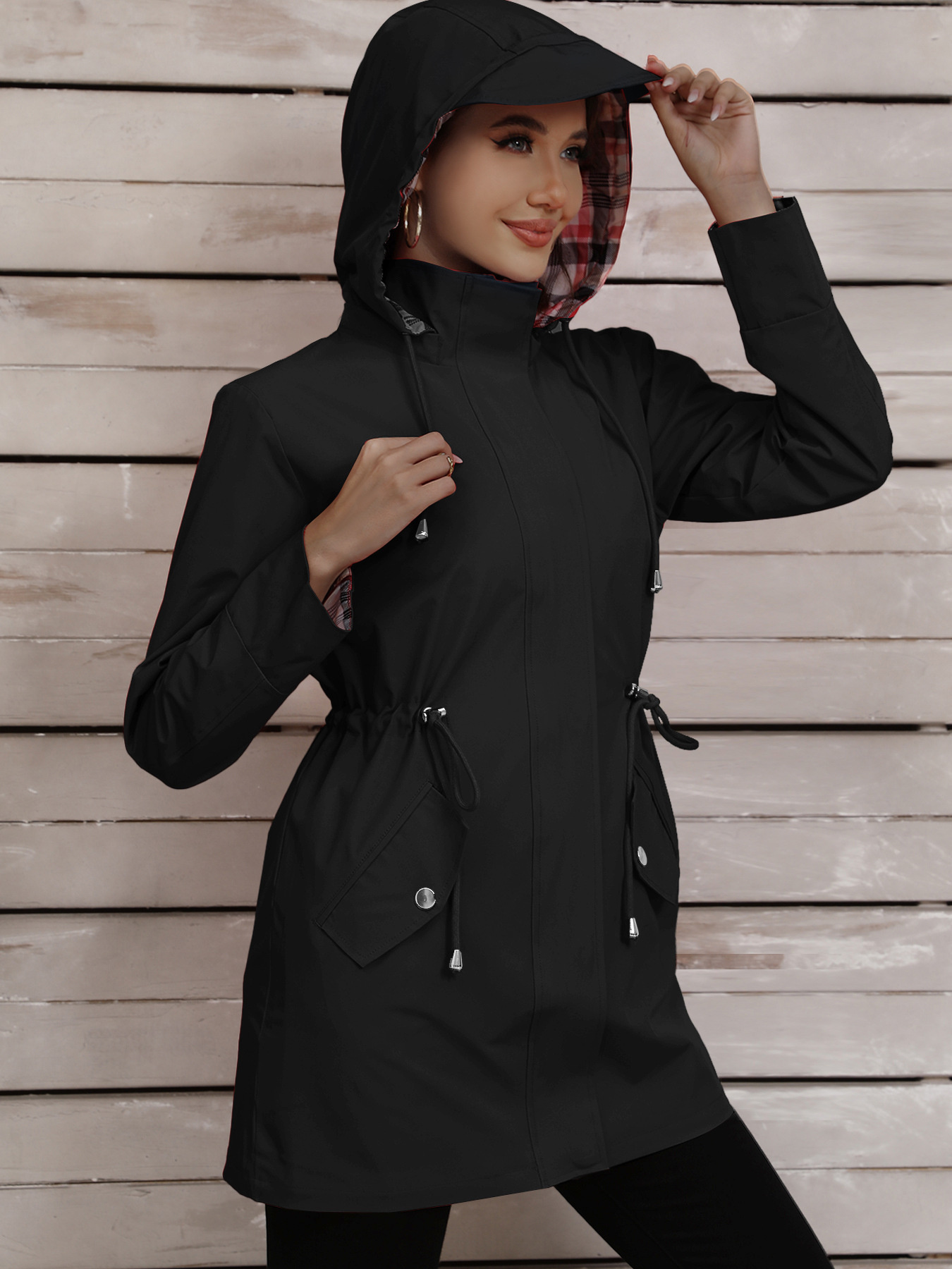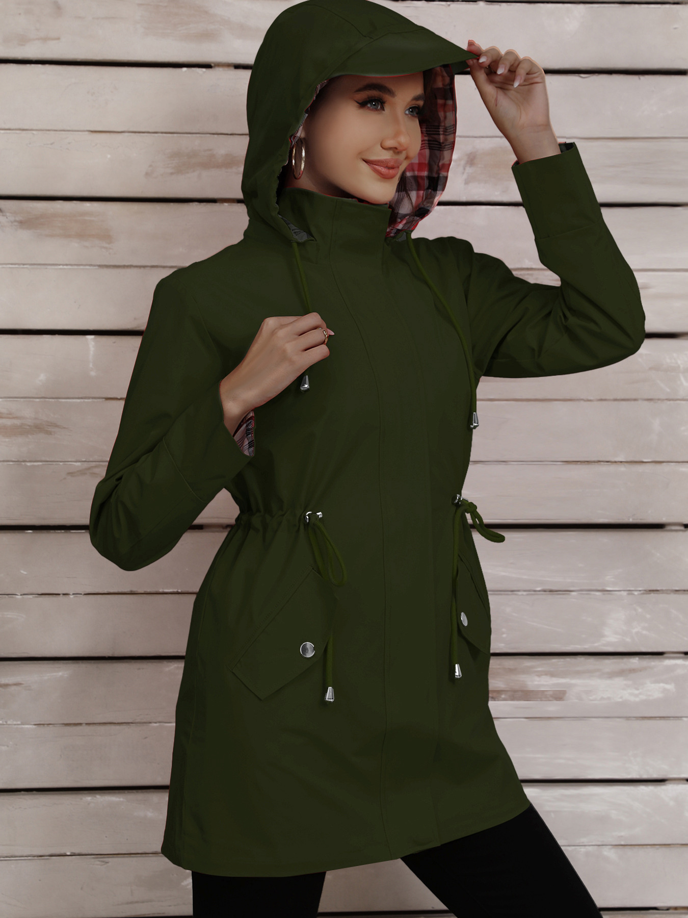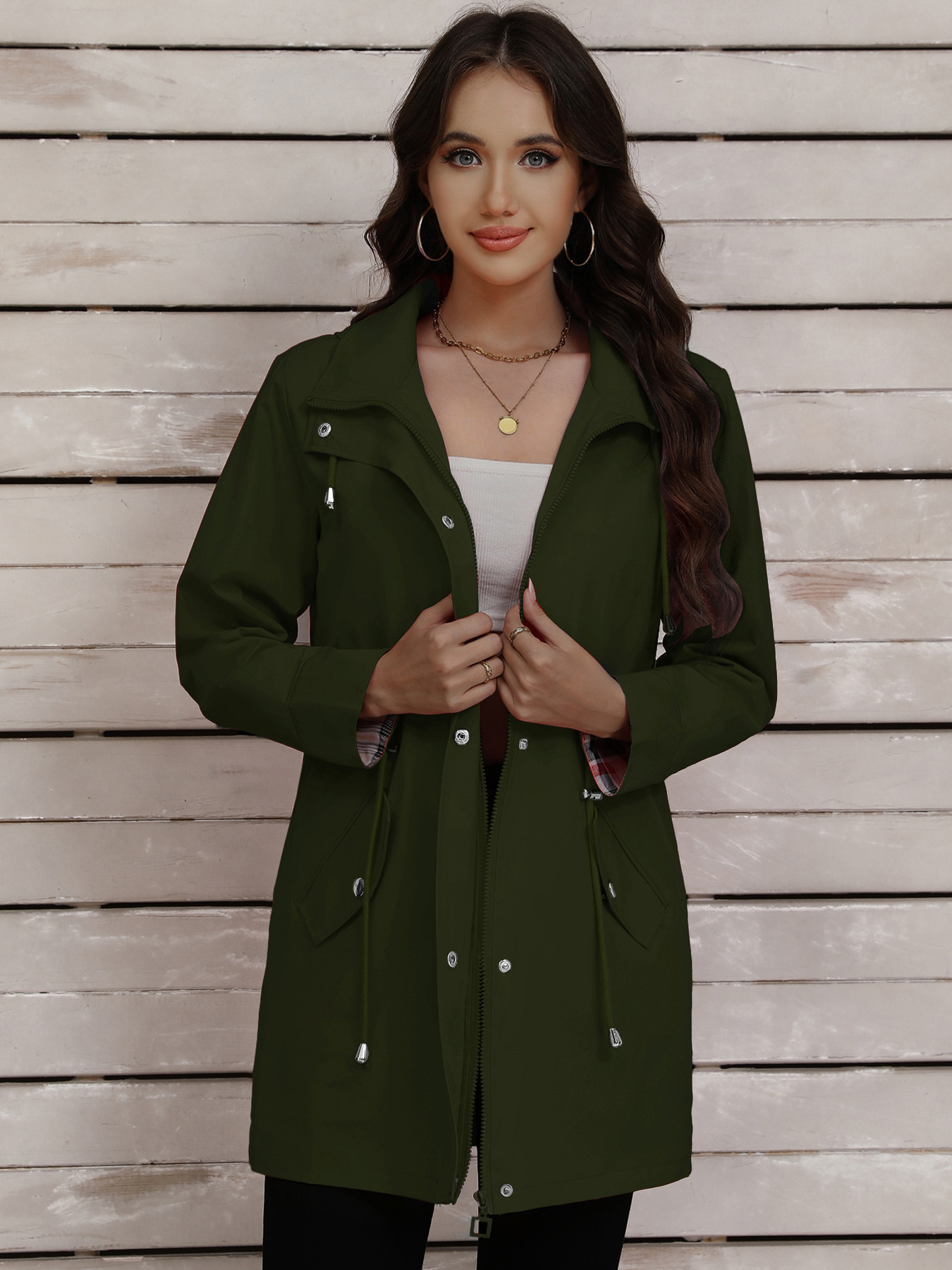 Drawstring Snap-Down Trench Coat