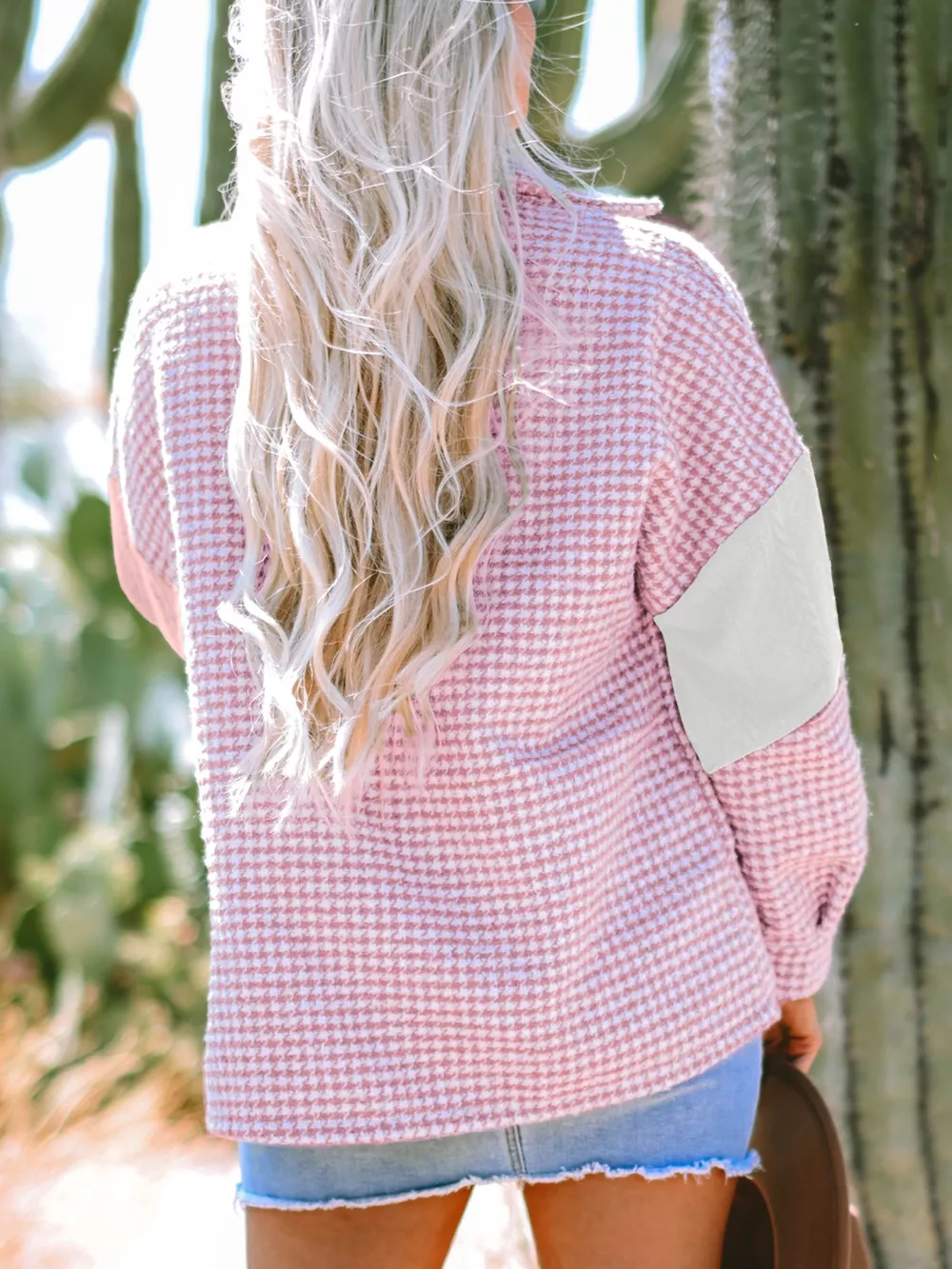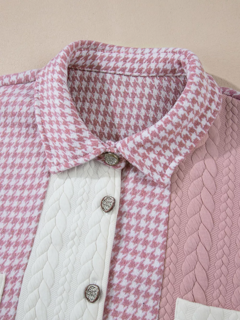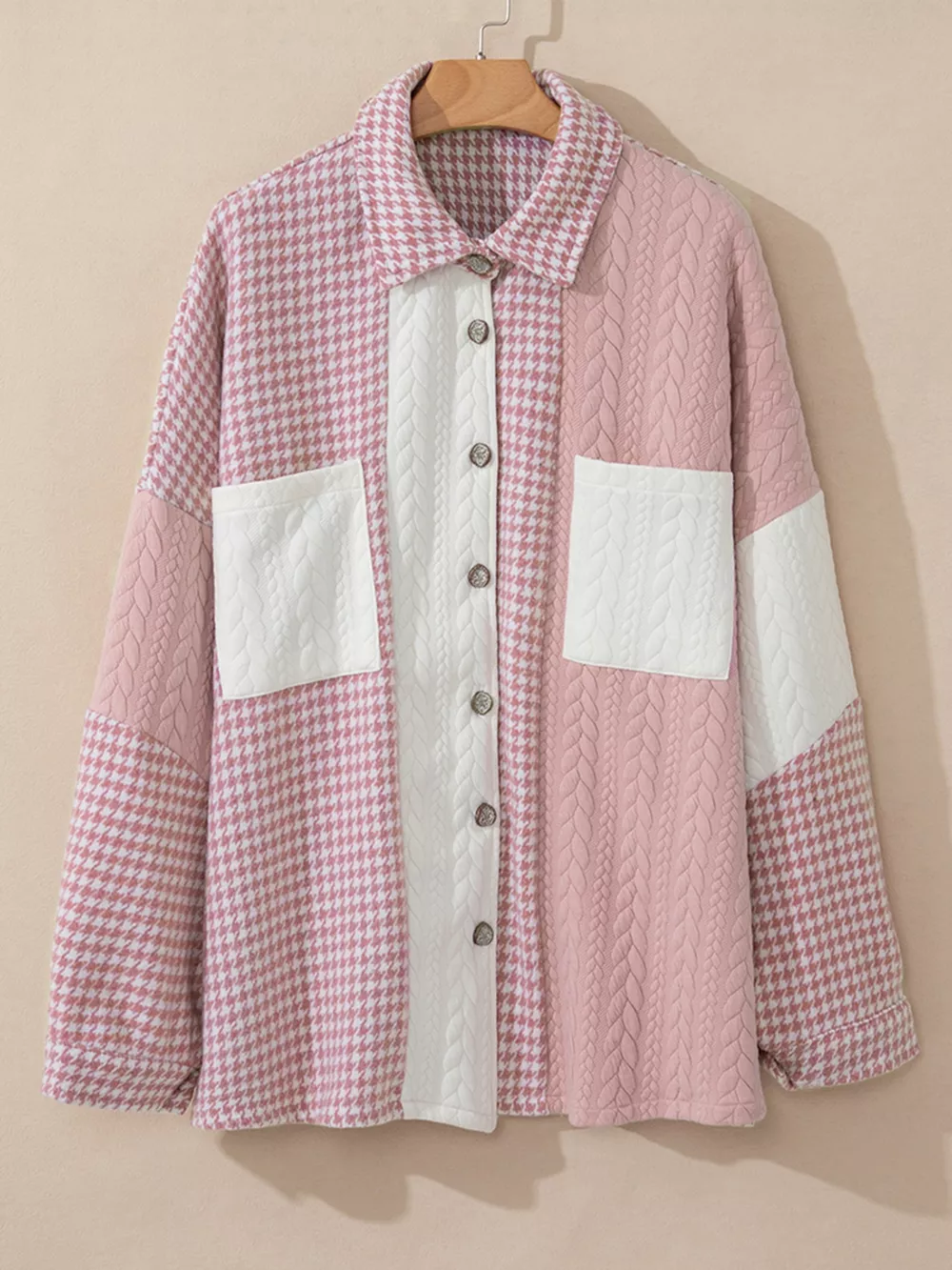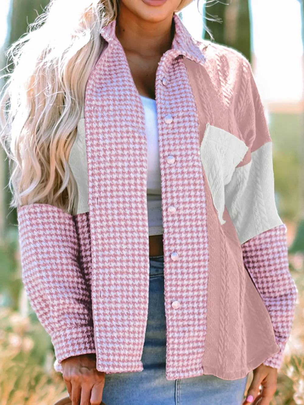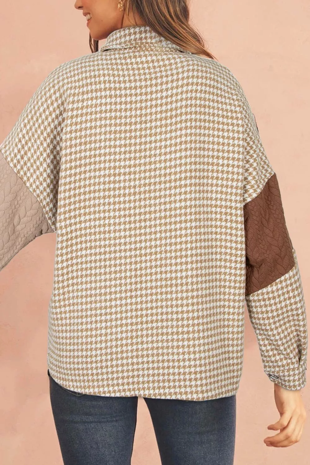 Button Down Houndstooth Color Block Shacket